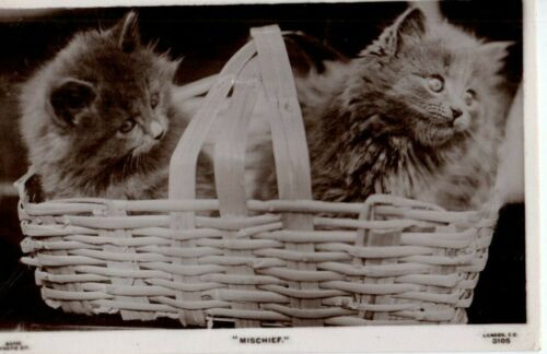 Title (ebay affiliate link): VINTAGE postcard: PRETTY KITTEN CATS IN A BASKET - MISCHIEF 1916