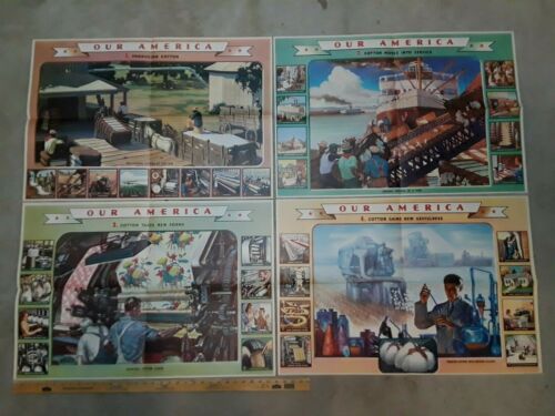 Title (ebay affiliate link): Coca Cola Lithos "Our America" Teacher''s Kit "cotton pick" Set 4 different 1954