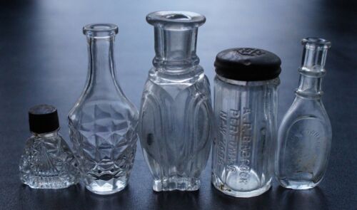 Title (ebay affiliate link): ANTIQUE VICTORIAN MINIATURE FIVE PIECE FRAGRANCE / PERFUME BOTTLE LOT