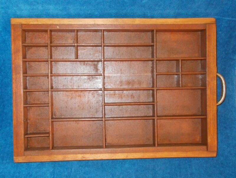 VINTAGE WOODEN PRINTERS DRAWER STYLE 28 SPOT SHADOW BOX WITH HALDLE