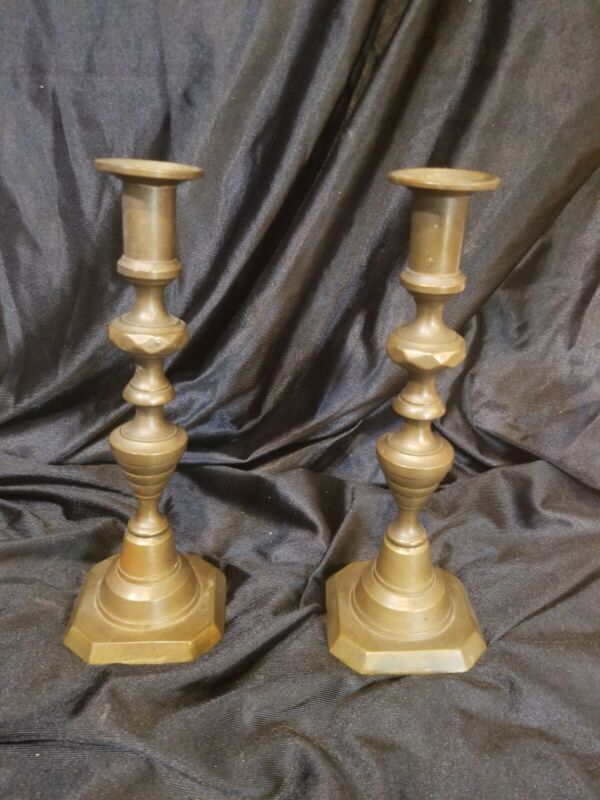 Pair Antique Beehive Push-up Brass Candlesticks 10" England