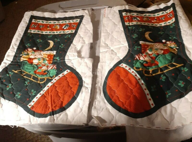 2 Panels Prequilted Unfinished Santa Sleigh 16" Christmas Stockings Panels
