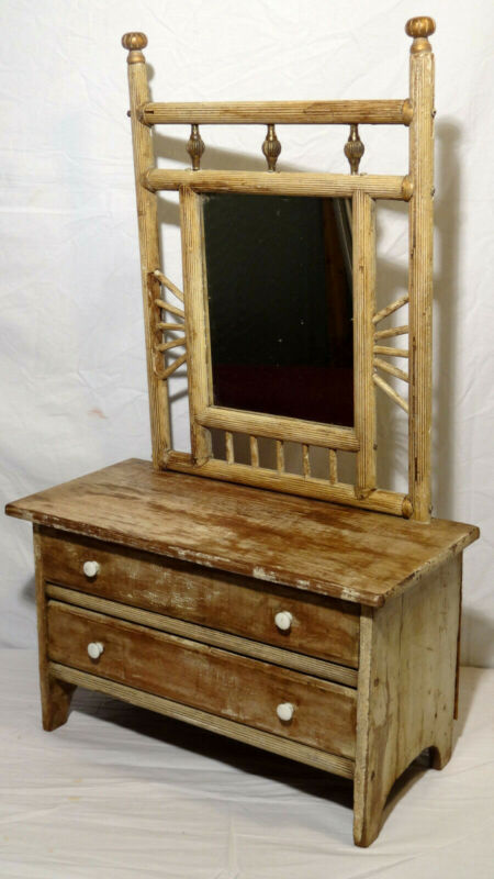 Title (ebay affiliate link): Antique Shabby-Primitive Doll Dresser or Jewelry Box w/ Mirror DROP-DEAD PATINA!