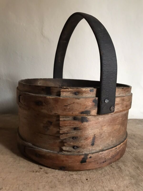 Title (ebay affiliate link): Old Antique Handmade Wooden Grain Measure Pantry Box Patina Leather Handle AAFA