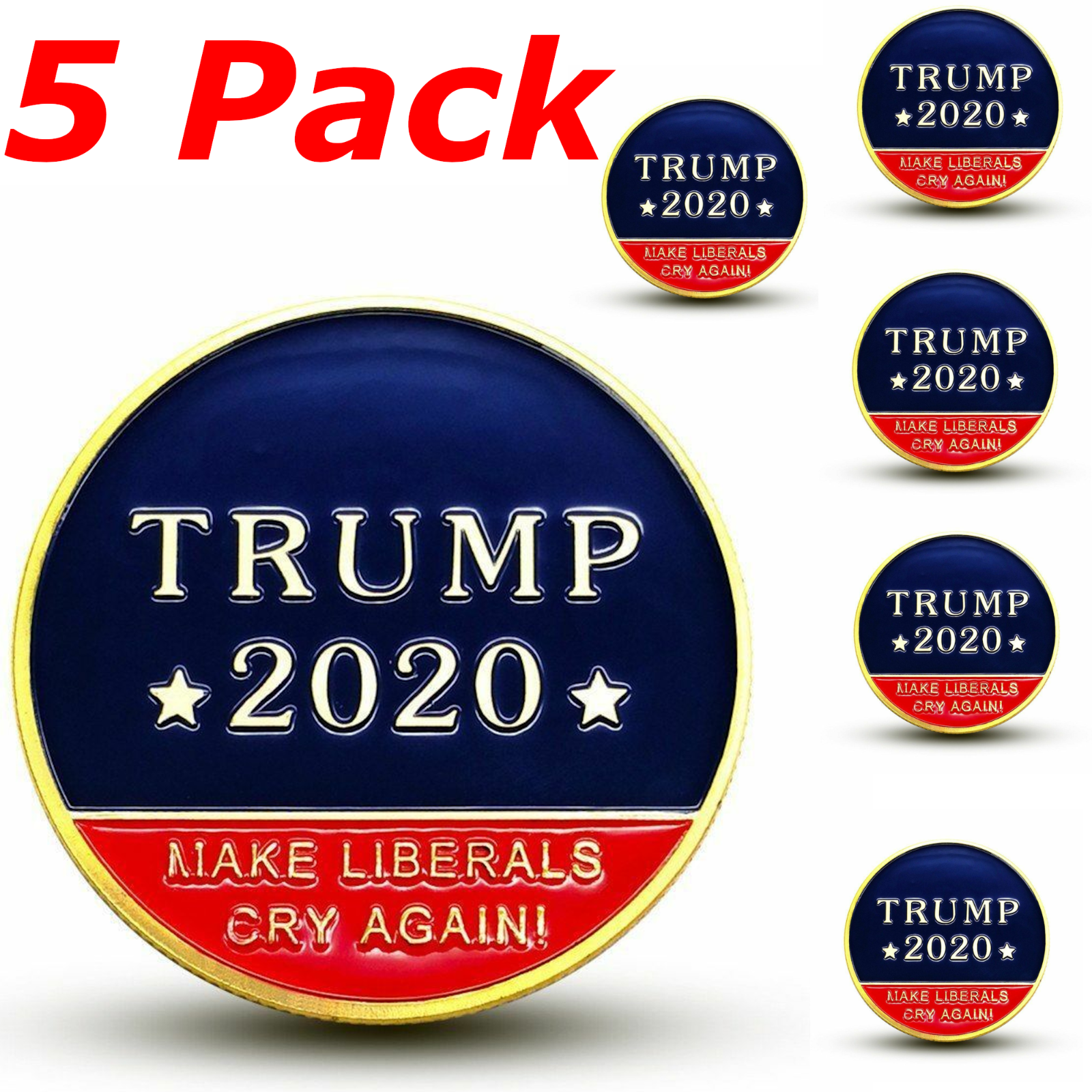5 Pieces Trump 2020 Make Liberals Cry Again Gold Challenge Coin Collectible Fun