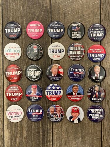 Title (ebay affiliate link): 25 Different Donald Trump President 2020 Collector Set Buttons Pins Pinbacks