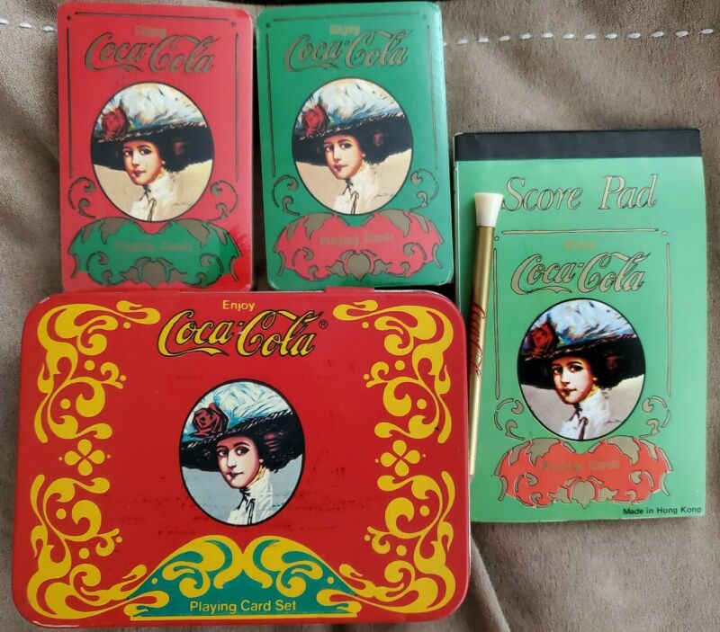 Title (ebay affiliate link): Vintage Coca Cola Sealed 2 Playing Cards Set Score Book Pencil In Tin