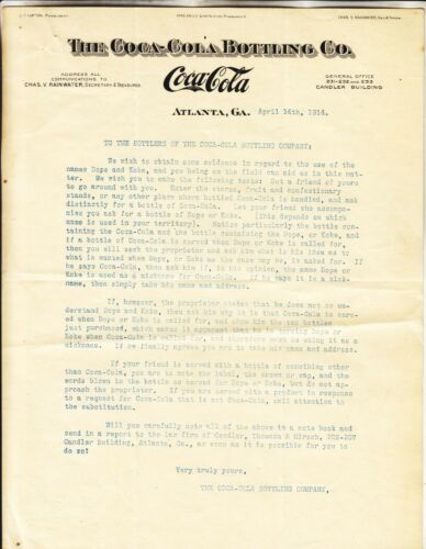 Title (ebay affiliate link): THE COCA-COLA BOTTLING CO. ATLANTA GA. LETTERHEAD DATED APRIL 14th, 1914