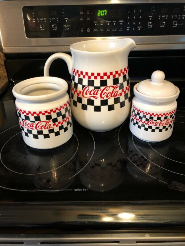 Title (ebay affiliate link): COCA COLA COKE Set Black Red White Check Gibson Ceramic Pitcher 2 Canister