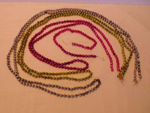 3 Vintage Mercury Glass Beaded Christmas Tree Garlands Silver Red Chartreuse