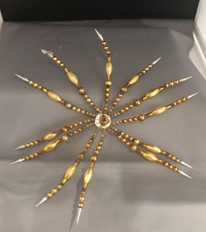 Title (ebay affiliate link): Large Vintage Christmas star tree ornament Czech mercury gold glass beads