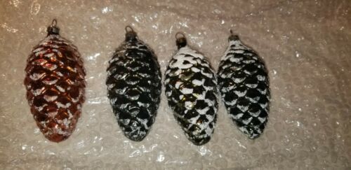 Lot of 4 Antique Mercury Glass Pine Cone Frosted Ornaments
