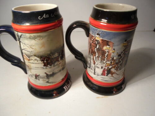 1990 and 1992 Budweiser Holiday Christmas Beer Steins Mug man cave Collectibles