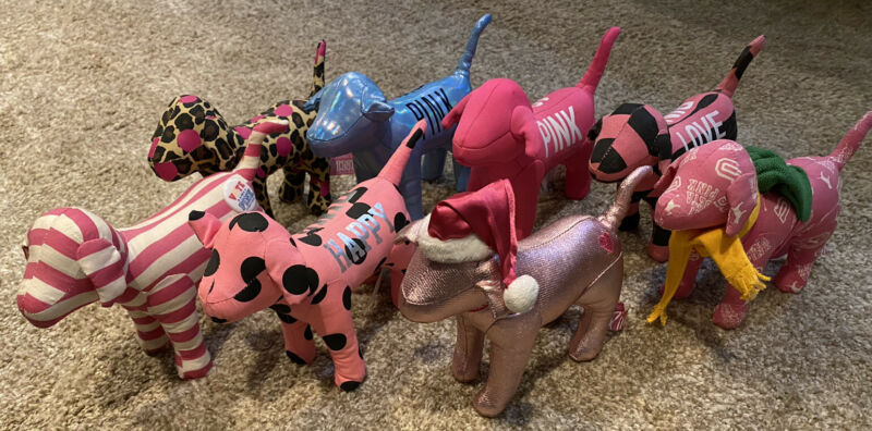 Title (ebay affiliate link): Lot Of 8 Victorias Secret PINK Plush Dog Collectibles RARE Polkadots, Blue