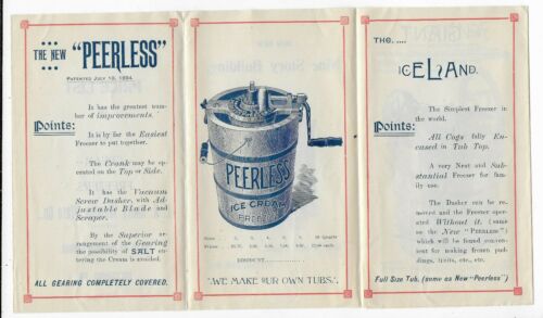 Title (ebay affiliate link): PEERLESS ICE CREAM FREEZER, 8 Panel 1895 Illus Adv Folder / Price List SMITH CO.