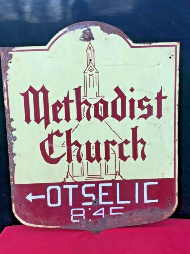Title (ebay affiliate link): 1940''s VINTAGE METHODIST CHURCH SIGN HEAVY METAL CHURCH SIGN LARGE 30" x 24"