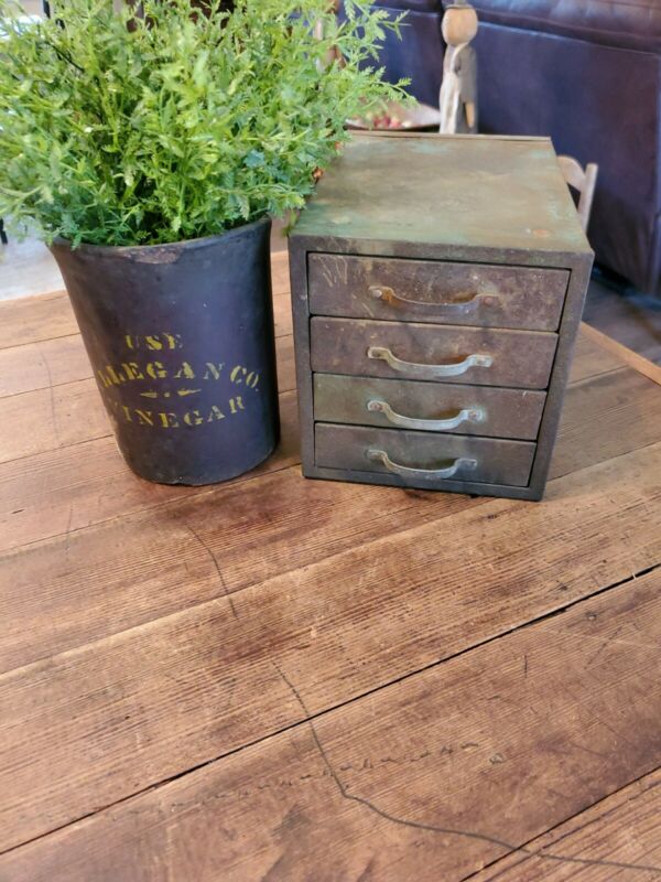 Old Vintage Antique Industrial 4 Drawer Cabinet Metal Storage Box Apothecary
