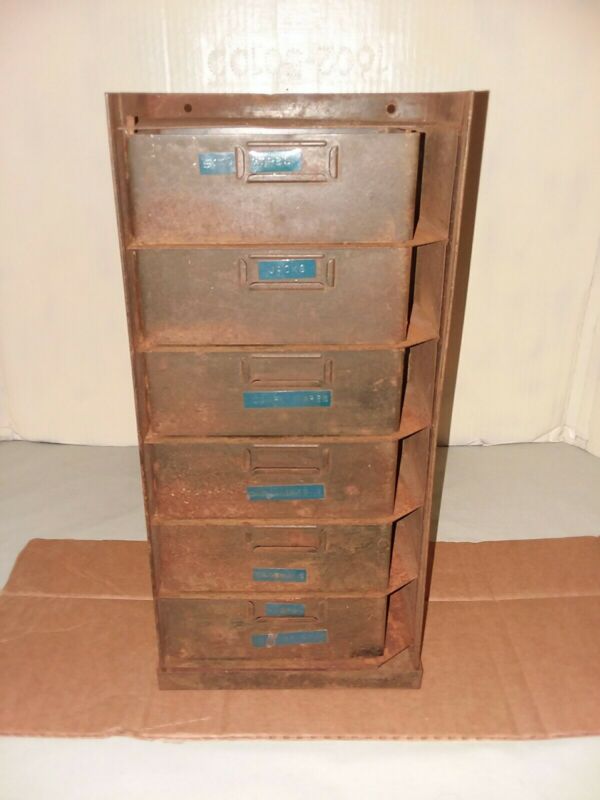 Title (ebay affiliate link): VTG Industrial Metal 6 Drawer Small Parts Storage Cabinet Side Swing Drawers