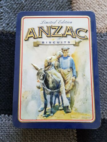 Title (ebay affiliate link): ANZAC NEW ZEALAND BISCUIT TIN ''THE MAN WITH THE DONKEY''.