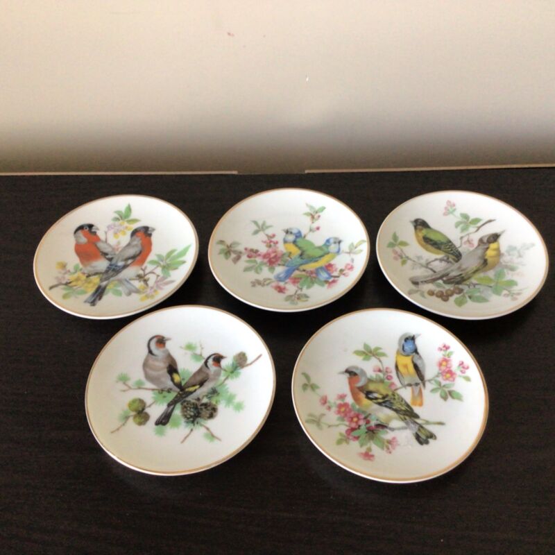 Set of 5 Small Hanging Display Plates Various Bird Breeds Painted Designs #402