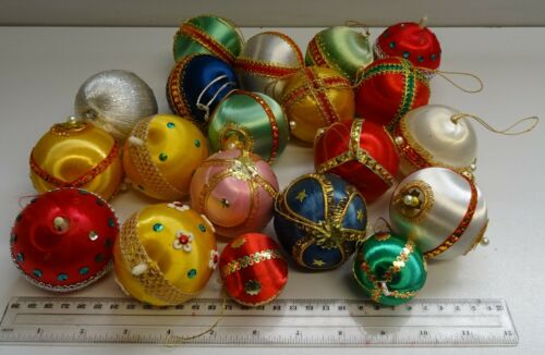 VINTAGE DECORATED SATIN / SILK CHRISTMAS ORNAMENTS / BAUBLES X 20 1970''S