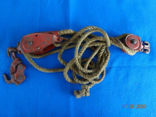 Vintage Double Sheave Metal Snatch Block / Block and Tackle W/ Rope - EUC