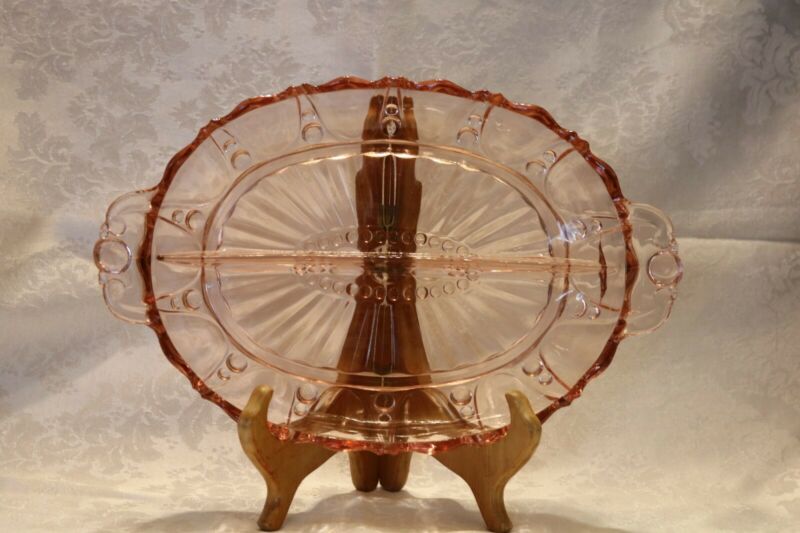 Vintage Pink Depression Glass Divided Relish Candy Serving Dish 12" x 73/4"