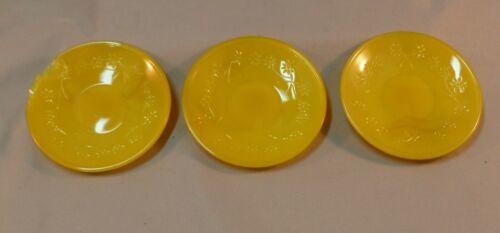 Vintage 3 Pc Akro Agate Yellow Raised Daisy Child''s Tea Set Saucers