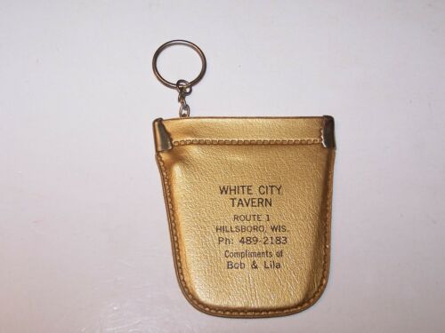 Vtg White City Tavern Hillsboro WI Wis Bob Lila coin purse key chain gold color