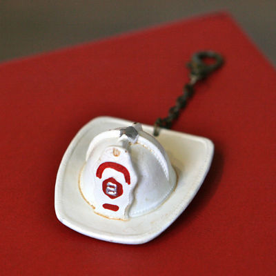 Title (ebay affiliate link): Antique Style Firefighter Helmet Keychain Charm White