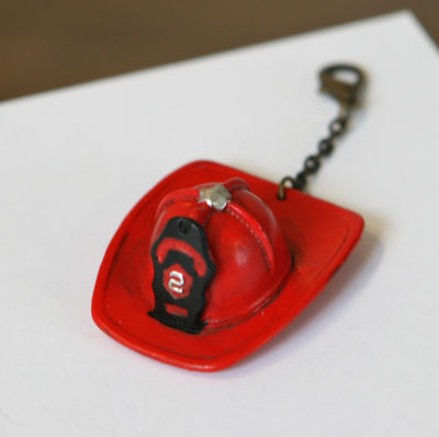 Title (ebay affiliate link): Antique Style Firefighter Helmet Keychain Charm Red