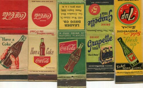 25 SODA MATCHCOVERS - COCA-COLA, RC, 7UP, GRAPETTE, PEPSI, DAD''S +