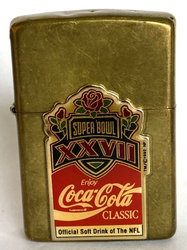 Title (ebay affiliate link): Zippo Solid Brass Super Bowl XXVII Enjoy Coca Cola