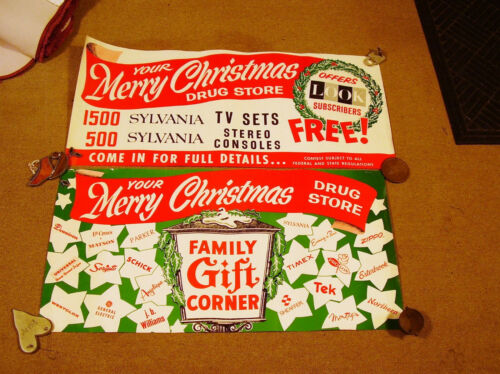 VINTAGE DRUG STORE X-MAS MERCHANDISE PRODUCT PAPER SIGNS, UNIQUE/ COOL, NO RES