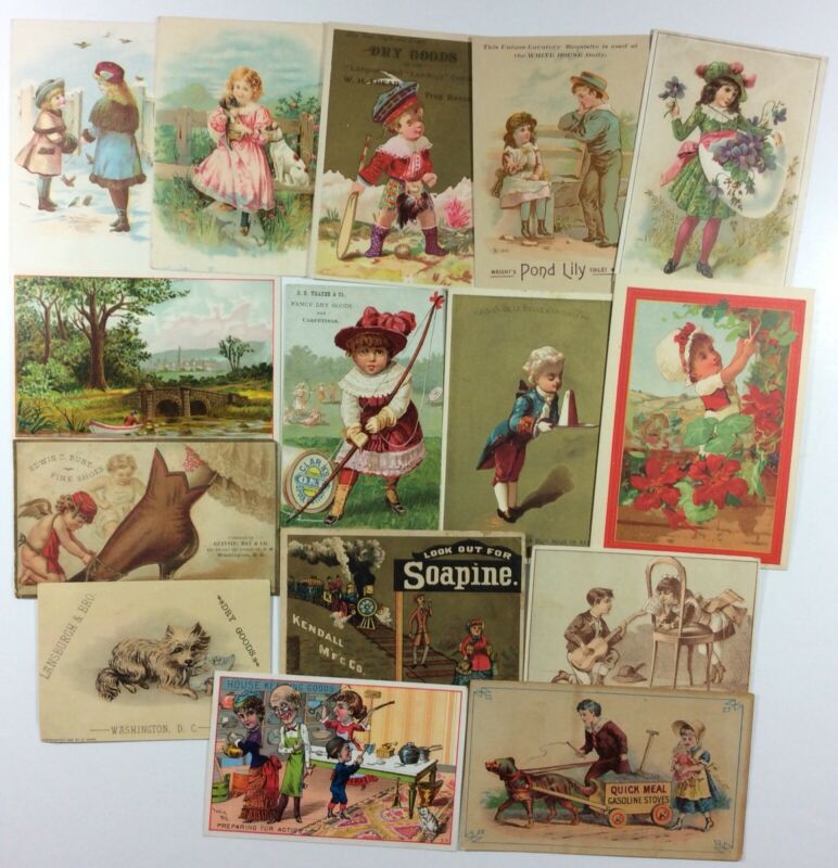 Title (ebay affiliate link): Vintage Lot of 15 Victorian Advertising Trade Cards - Women, Flowers, Children