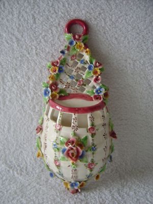 VINTAGE ITALIAN/CAPODIMONTE? HAND PAINTED WALL POCKET
