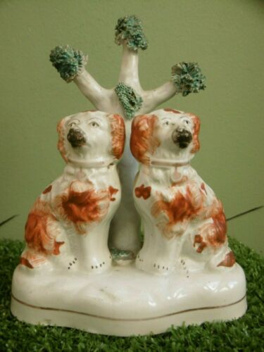 Title (ebay affiliate link): SUPERB 19thc STAFFORDSHIRE OF TWO RED & WHITE SPANIELS WITH TREE BEHIND C.1850