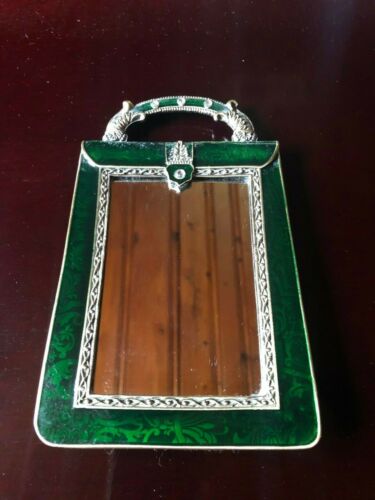 Vintage Green Enamel and Metal Stand Up Mirror Purse Shape