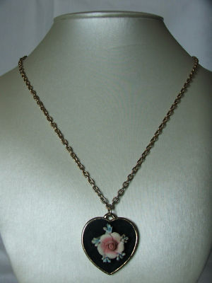 CAPO-DI-MONTE PORCELAIN FLORAL HEART PENDANT & CHAIN