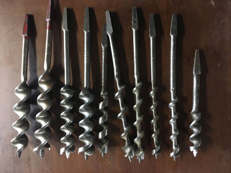 Vintage Mix Set of 10 Wood Auger Bits, Russell Jennings, Miller Falls, Memphisto