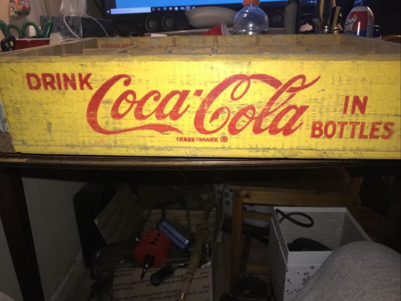 Title (ebay affiliate link): Vintage Coca-Cola Wooden Yellow 24 Bottle Crate Carrier Box - EXCELLENT COND