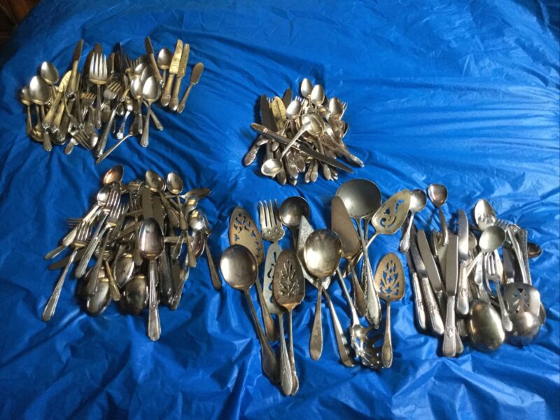 Title (ebay affiliate link): 210 Vintage Silverplate Flatware Forks Spoons & Knives For Use or Crafts 21+ Lbs