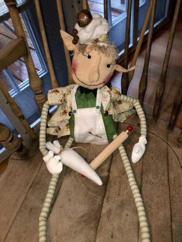 Title (ebay affiliate link): Primitive Christmas Elf Baker Doll 32 inches with Kitchen Elf Christmas Shelf