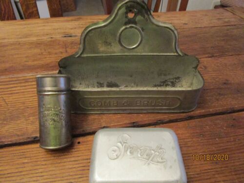 vintage antique lot of 3 TIN bathroom accessories collectible