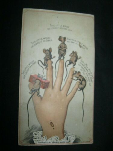 Victorian Trade Card 1884 RARE This Little MOUSE on Hand Trap Tails FABULOUS 18