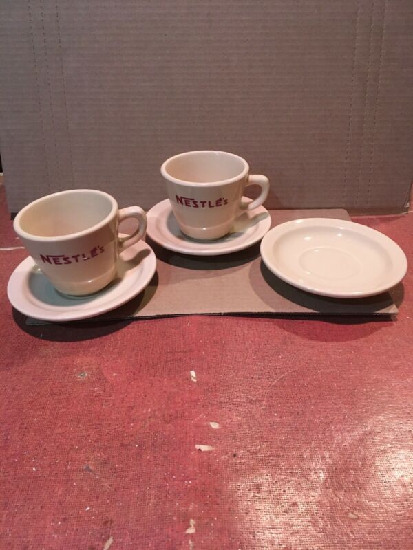 Vintage Retro mid century ceramic Nestle''s 2 hot chocolate cups and 3 saucers