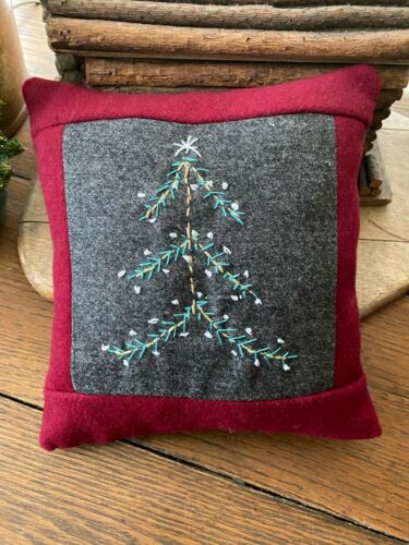 Primitive Stitchery Hand Stitched Christmas Ornie Evergreen Wool