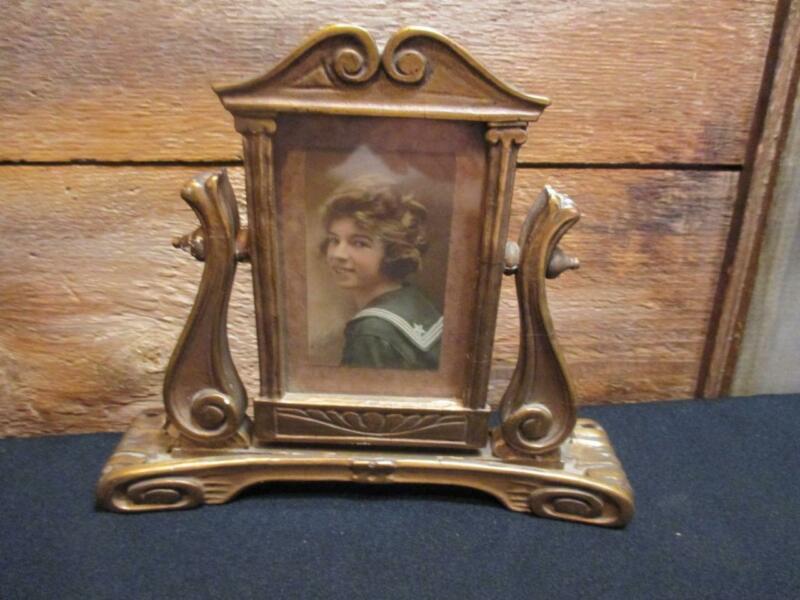 Small Antique swing / tilt picture frame 3x5 Photo Girl in U S NAVY WWI uniform