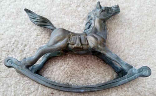 Antique vtg Hand Carved Rocking Horse solid Copper Brass carousel art figure 8"