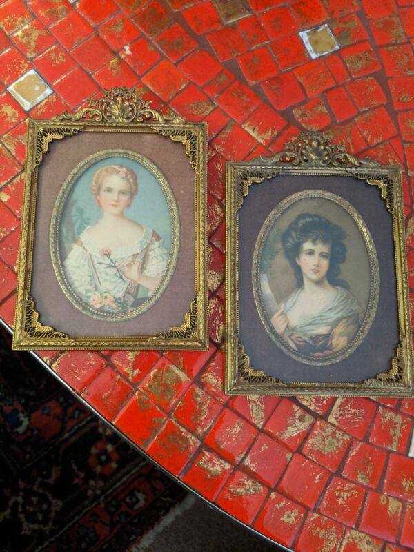 PAIR ORNATE BRASS VICTORIAN PICTURE FRAMES 4+ X 5+